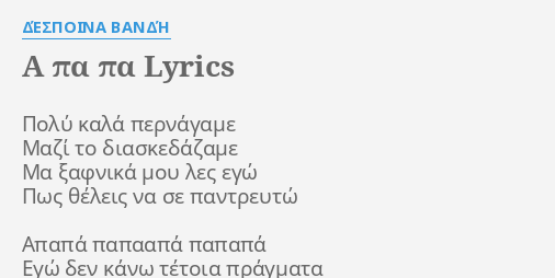 A Pa Pa Lyrics By Despoina Bandh Poly Kala Pernagame Mazi
